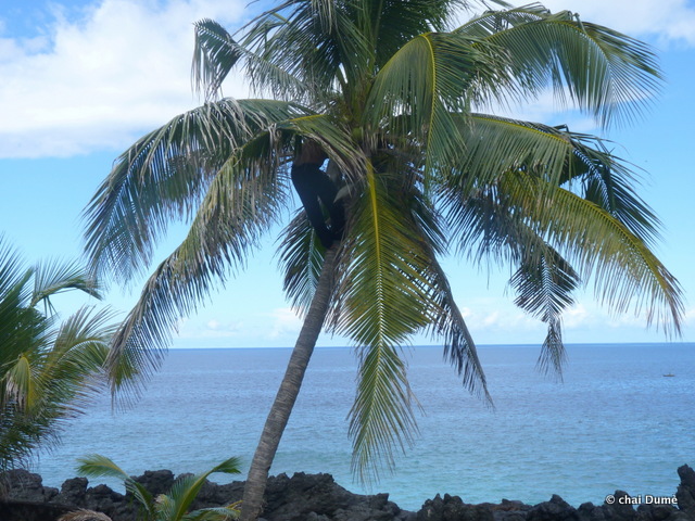 il se souvenait bien des départs au champs de son père lorsqu’il était enfant ; il l’accompagnait parfois ; sur la route il grimpait au cocotier et ramassait une noix de coco fraîche ;