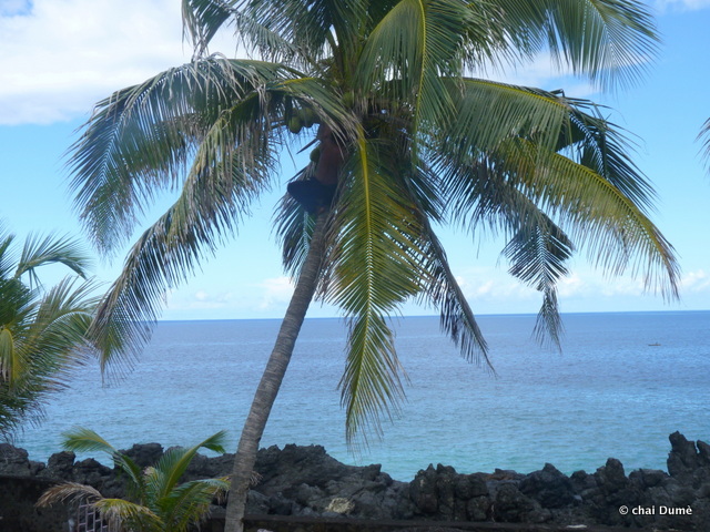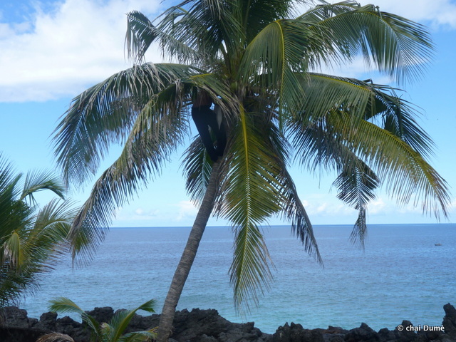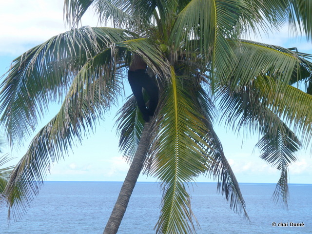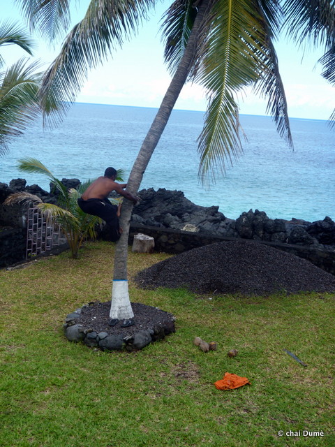 il se souvenait bien des départs au champs de son père lorsqu’il était enfant ; il l’accompagnait parfois ; sur la route il grimpait au cocotier et ramassait une noix de coco fraîche ;