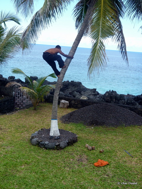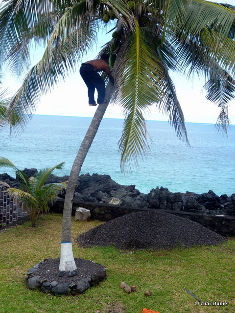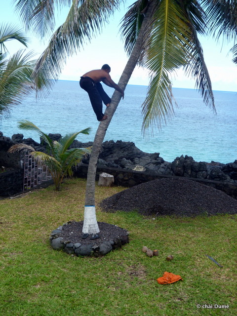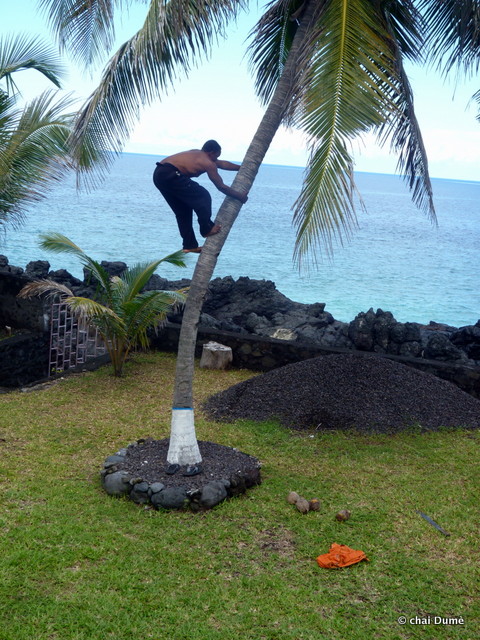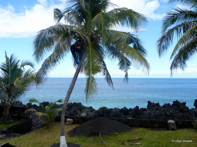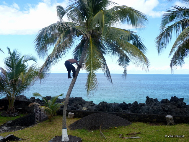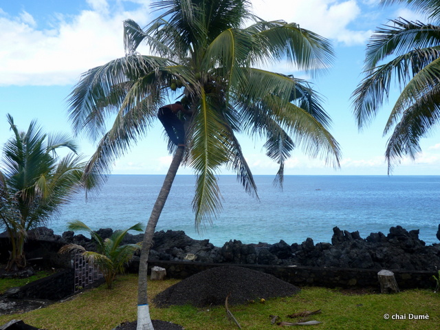 de plus, depuis qu’il avait remplacé l’ancien outil de son grand père par une râpe moins archaïque dénichée au marché cela était bien plus rapide de faire le lait de coco ;