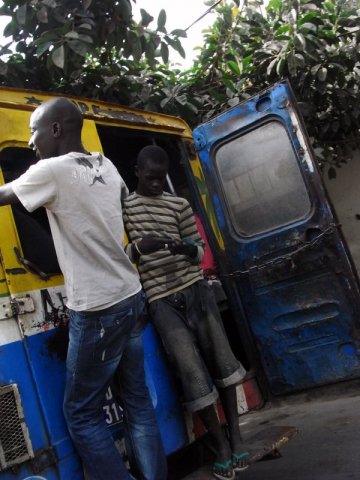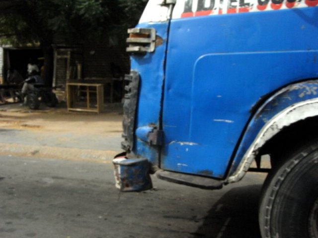Une définition que semble partagée Mamadou Diallo, acolyte dans la vie et collègue de O. Mané, dont la méfiance, volontairement affichée à notre vue, s’estompe progressivement pour laisser place à une personne tout à fait charmante et appliquée sur son travail. Sur un fond noir, il s’évertue à peindre trois losanges blancs qui vont orner les « caches-poussière » d’un car rapide en attente de ses ornements. Nous pensons être des artistes parce que la recherche de la beauté nous guide en premier ». La beauté dans le sens kantien du terme : « le beau, c’est ce qui plait universellement sans concept ».