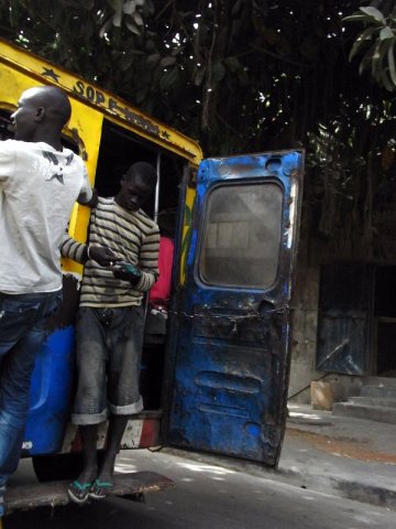 Les narines, déjà émoustillées par la poussière ambiante de Dakar, souffrent un peu plus sous les effets conjugués des différentes senteurs dégagées par la peinture fraiche. Un mélange de peinture avec de l’essence, du pétrole et ou du diluant. Cocktail explosif qui ne semble pas avoir fait de dégâts sur Ibrahima Diop. Lunettes noires, la soixantaine annoncée, il fait largement plus jeune que son âge, celui qui dit avoir plus de 20 ans d’expérience, distribue consignes et ordres à ses trois enfants qui constituent l’entreprise familiale de peinture. Nous sommes à un des angles de l’avenue Malick Sy, un atelier de peinture, puis de décoration d’où partent les cars rapides, mastiqués, décorés, repeintes comme neuves pour le transport des dakarois.