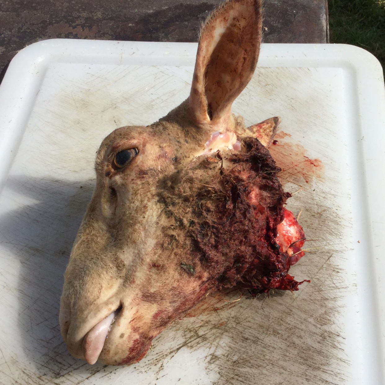 nous avons cuisiné la tête ainsi que les rognons de la manière la plus simple possible ; simplement rôtis ; la voilette autrement dit la crépine a servi à envelopper le foie pour de succulentes brochettes ;