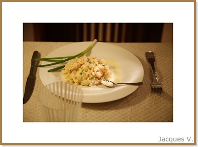 pendant que mes apprentis pêcheurs s’égayaient dans les bolongs (bras de mer qui se mêlent au fleuve Saloum), je leur ai donc préparé un risotto avec les moyens du bord et ceux…. de ma glacière ; il a été terminé le lendemain matin au petit déjeuner ;